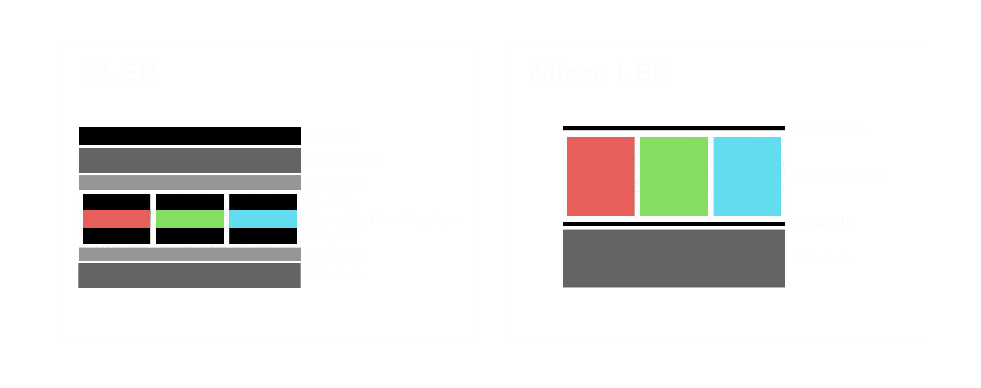 以 LED 做为显示画素,,,,可让 LED 的发光效率发挥到极致,,,,从而让显示器具备优异的亮度表现,,不论是在户外或室内,,,,均具备出众的显示效果。。同时,,与使用有机材料的 OLED 相比,,,,LED 具备更稳定、、寿命更长的特性,,,,不仅不会有画面烙印问题,,而且更不容易出现故障、、、、坏点。。。