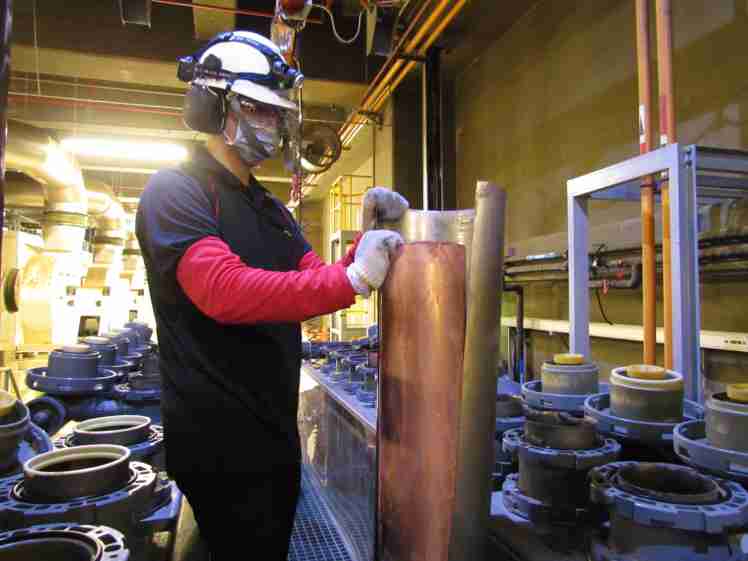 CG电子将废弃物转化成有效的工业或民生原物料,,,,图为废铜液淬炼后再制成纯度极高的铜管